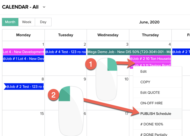 - Right Click on a calendar entry for the DATE you want to PUBLISH.