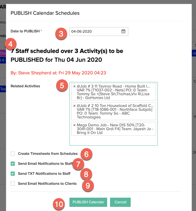 *SCHEDULE: Publishing Schedule Notifications for Staff and Clients