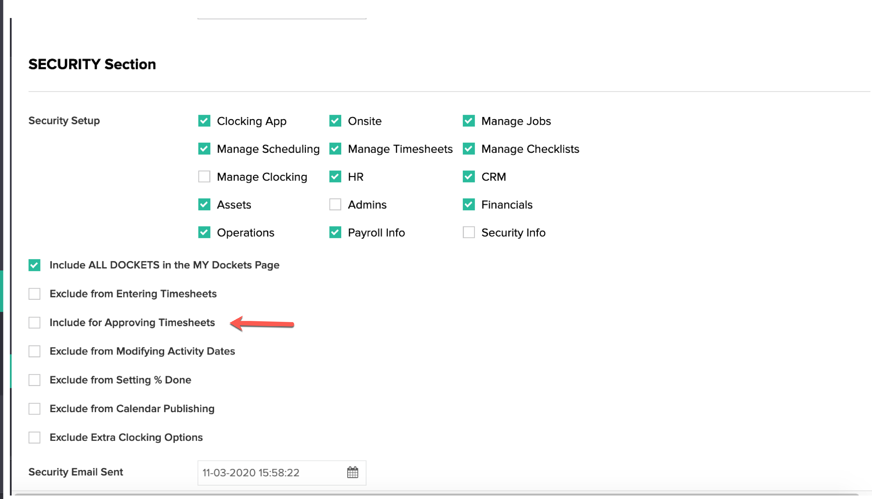 In HR Menu/Staff List (Active), click Edit then scroll to Security Section - Tick "Include for Approving Timesheets" and Update/Submit .
