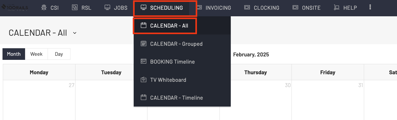 STEP 1: To access the calendar you select the SCHEDULING and then CALENDAR All button from the top black menu bar