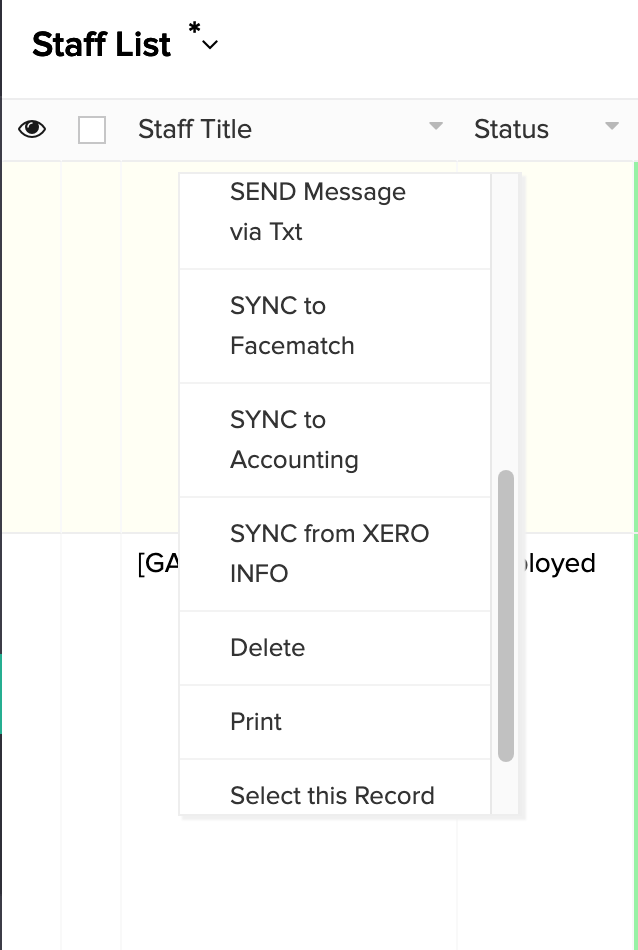 Delete: DO NOT USE as you can set their status to Finished if they don't work for you and that action moves them to the Staff List (All)