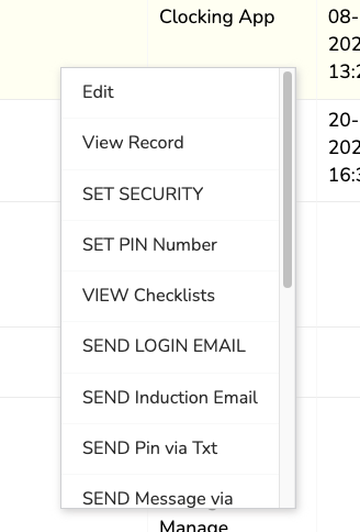 Send Message Via Text: This will send a text message to the employee, NOTE: your company must be set up to use this function