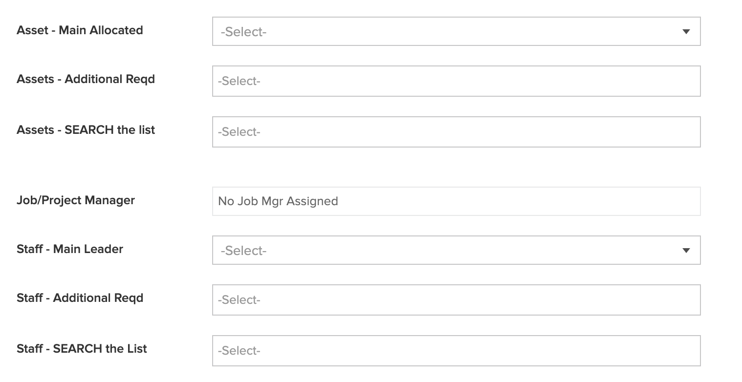 Add any assets and staff required if known ( you can always came back and add/edit this)