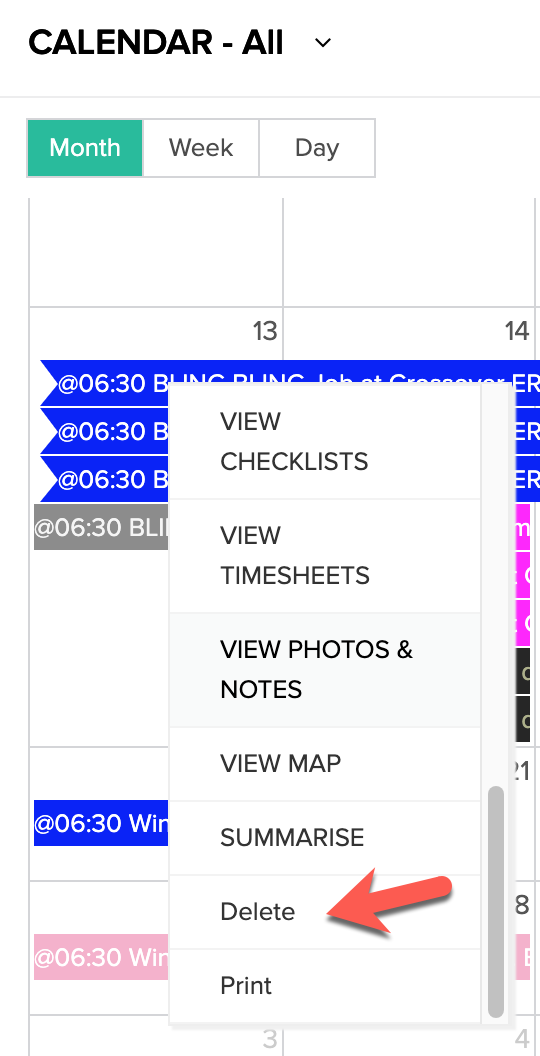 Deleting an Activity: Right click on the Activity required and scroll down to Delete.