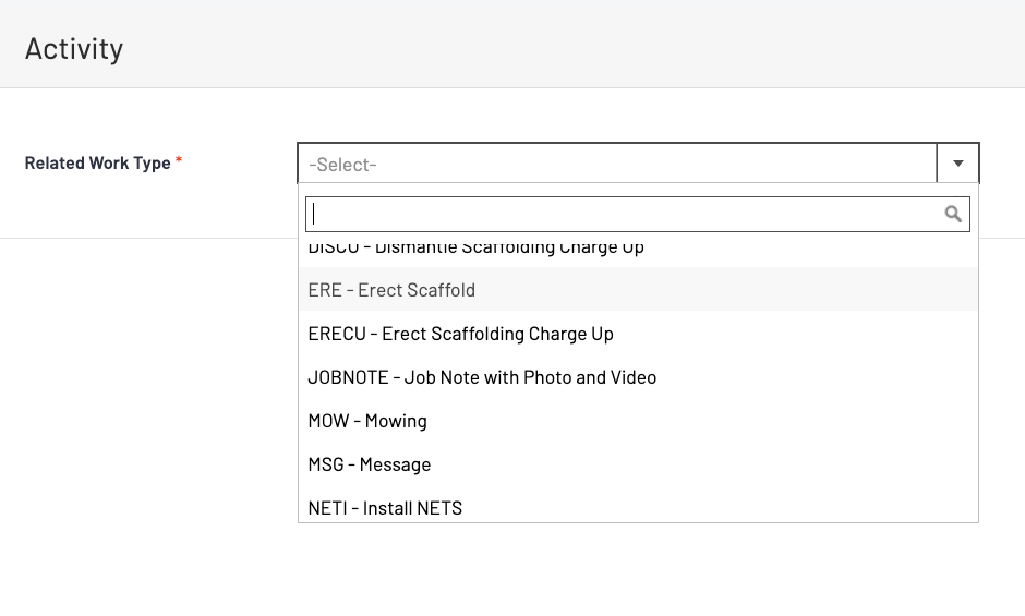 Go to the required date on the calendar (left click) or use the + button to beginning adding a work activity.