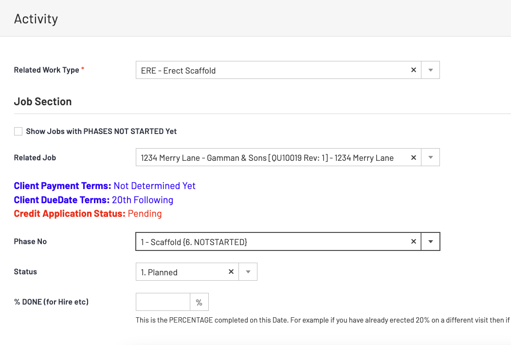 Fill in related job, which then will show all phases in drop boxes attached to this job.