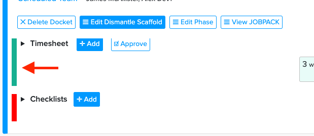3. Remember to push Add Timesheet at the bottom of page, The line running down the side of checklists will now be green indicating timesheets have been added.