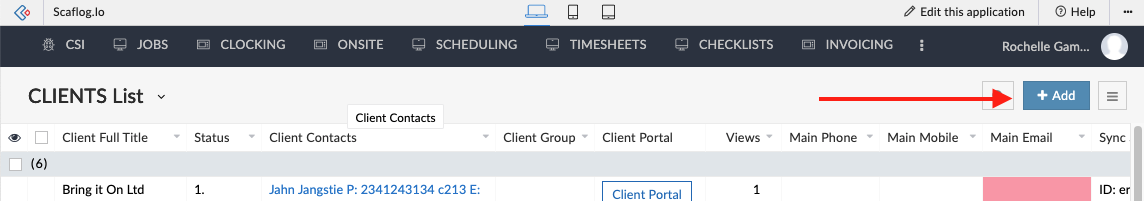 Click + Add New in the Client Contacts area and this will automatically add the main contact to the contacts List
