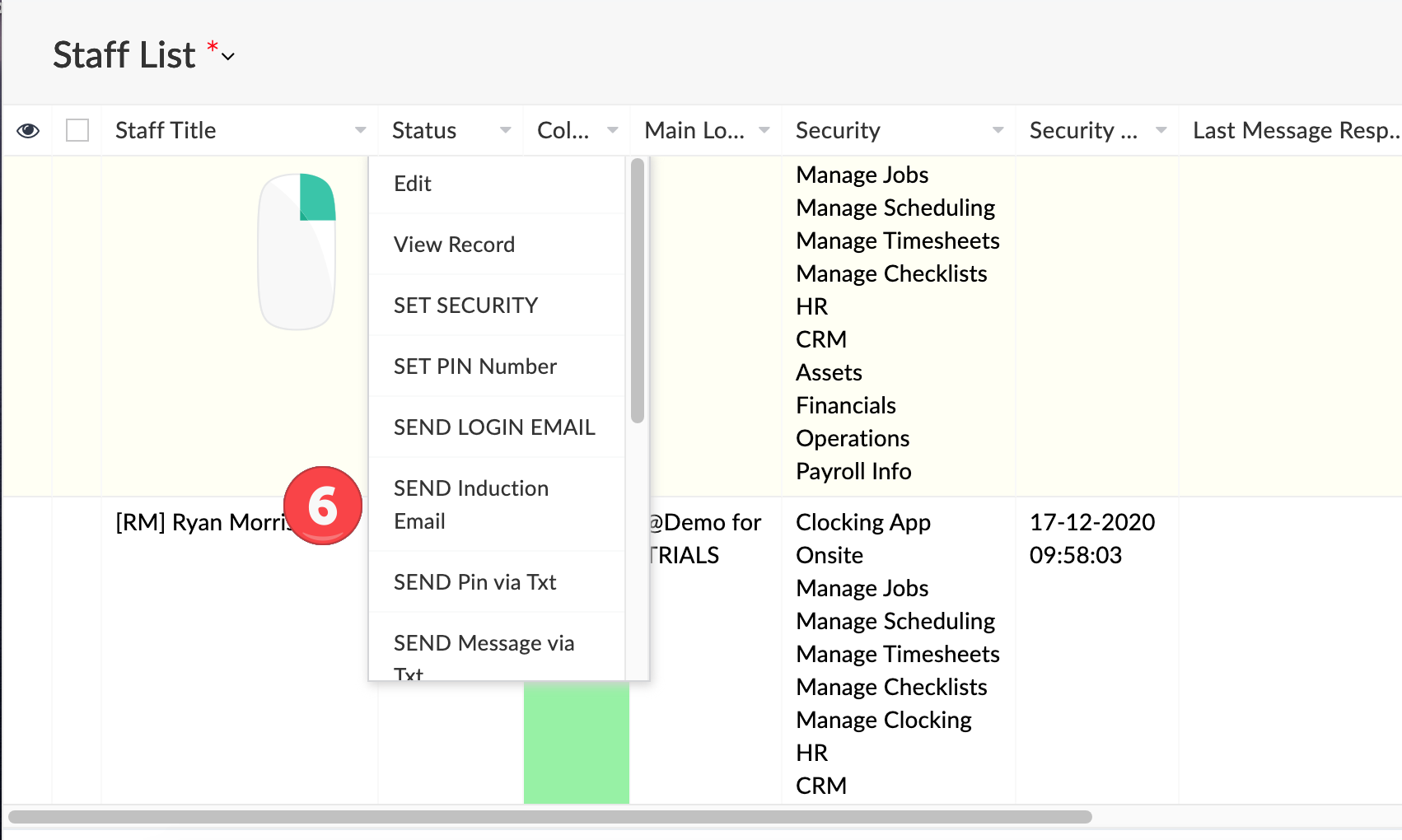 3. Search for or scroll till you FIND the Staff member you want to Induct OR set them up as a new staff member