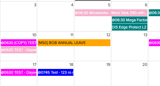 Messages on the calendar are a good option for the user to visually see things such as "Bob being on Annual Leave" as so not to schedule him in for work that week. This has no flow on effect to anywhere else within Scaflog.