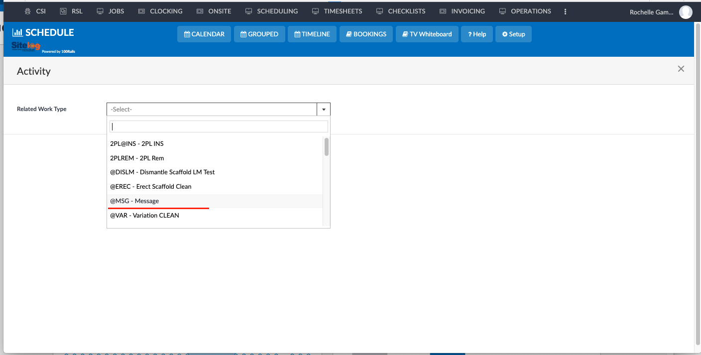 1. In the Schedule, left click to add an activity as you normally would and choose the Message activity.