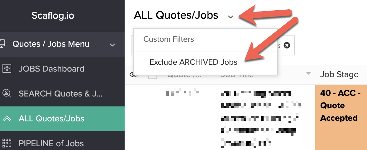 How to Exclude ARCHIVED Jobs from the All Quotes and Jobs Option