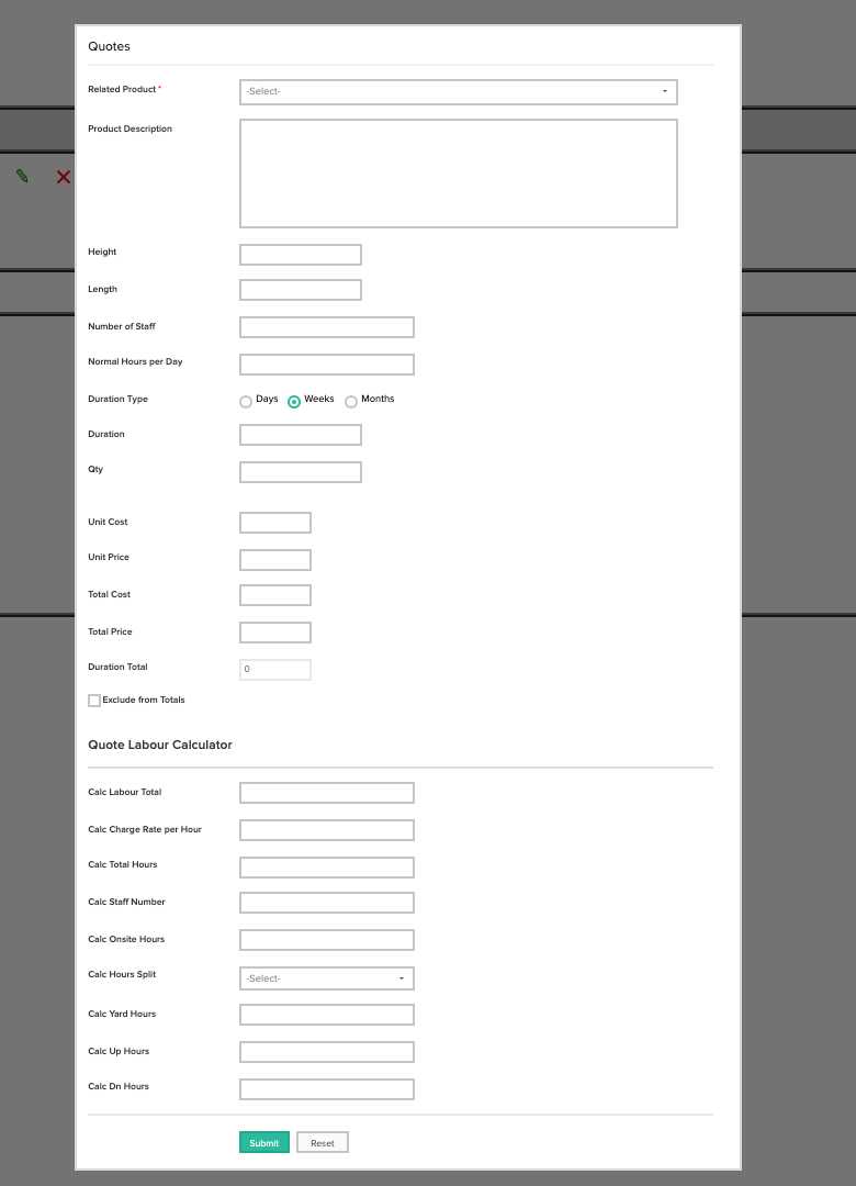 The labour calculator is NORMALLY only used on labour charge products on Quotes. The calculator will take the TOTAL labour charge (with Erect and Dismantle or Install and Removal costs and then use a formula to work out the Hours for the erect, dismantle and optionally the yard time.