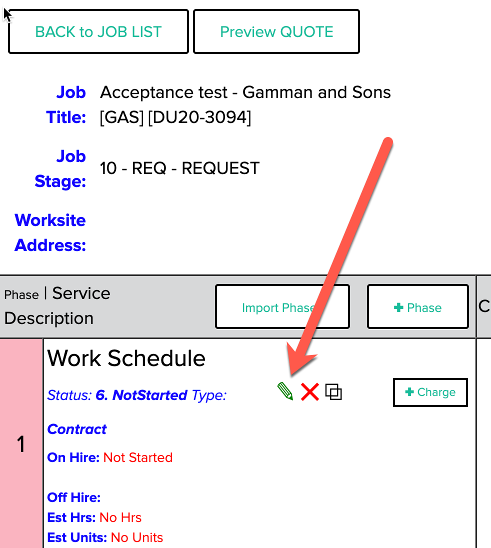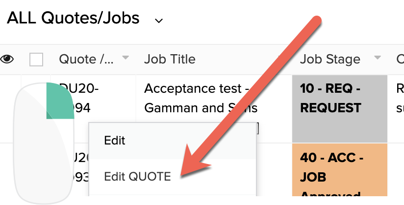 A. Go to the Quotes/Jobs list
