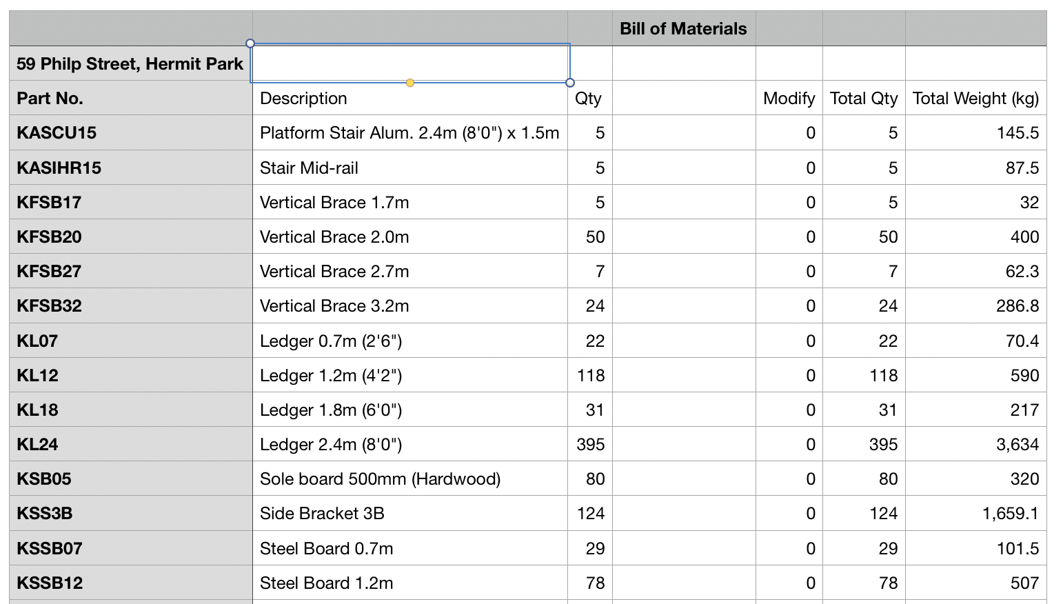 The standard file that is exported from Avontus has two rows at the top. The first has the file name and the second has column headings, Part No. , Description, Qty, (Blank), Modify, Total Qty, Total Weight (kg)