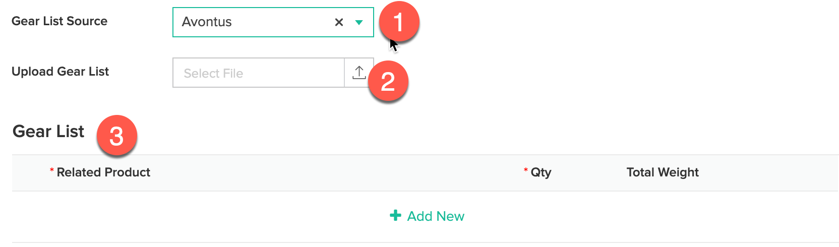 D.1. Select the TYPE of Gear List Source (at present you can select Avontus)