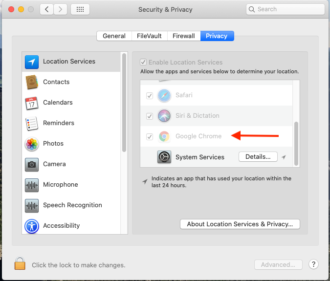 *MISC: Enable your Service Location for Google Chrome For MAC