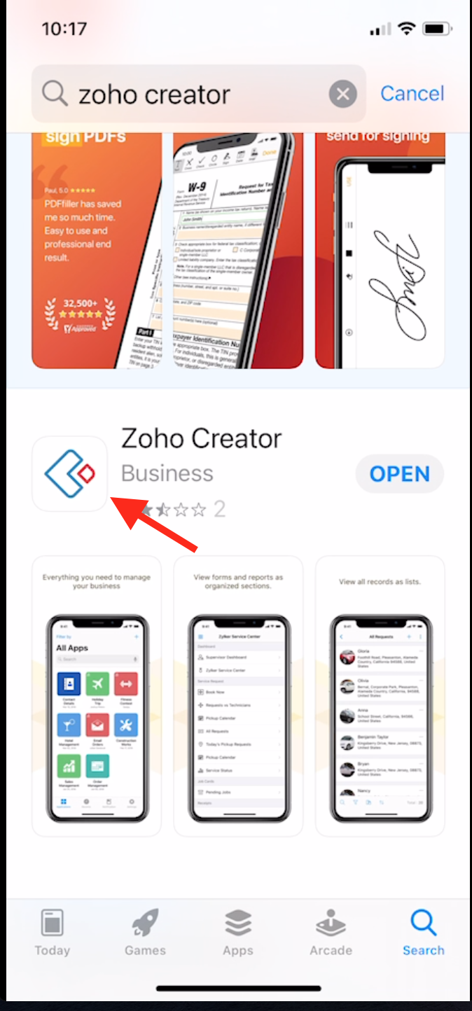 1: Search for Zoho Creator