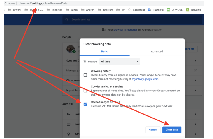 The Clear browsing data page should come up as below, ONLY tick the cached images and files tick box and then hit the "CLEAR DATA" button at the bottom right.