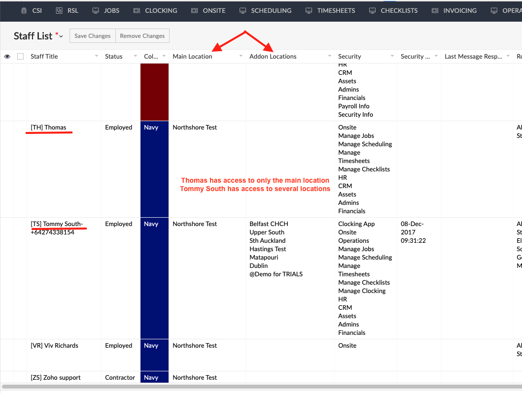 3: Staff List: This allows the staff member to view each job at the given location. If you have several locations you will need to ensure your staff have all the locations they need to have access to.