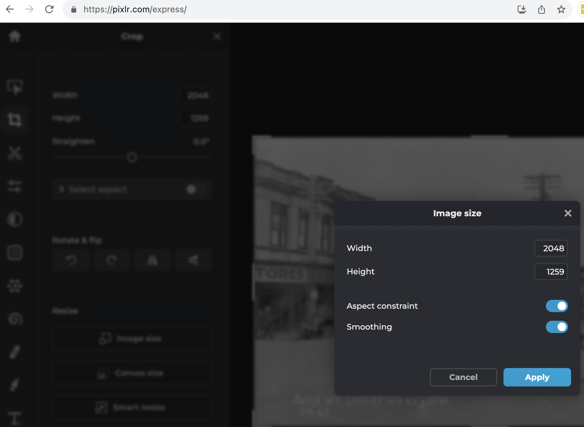 Use https://pixlr.com/express/ to Upload and Edit the image