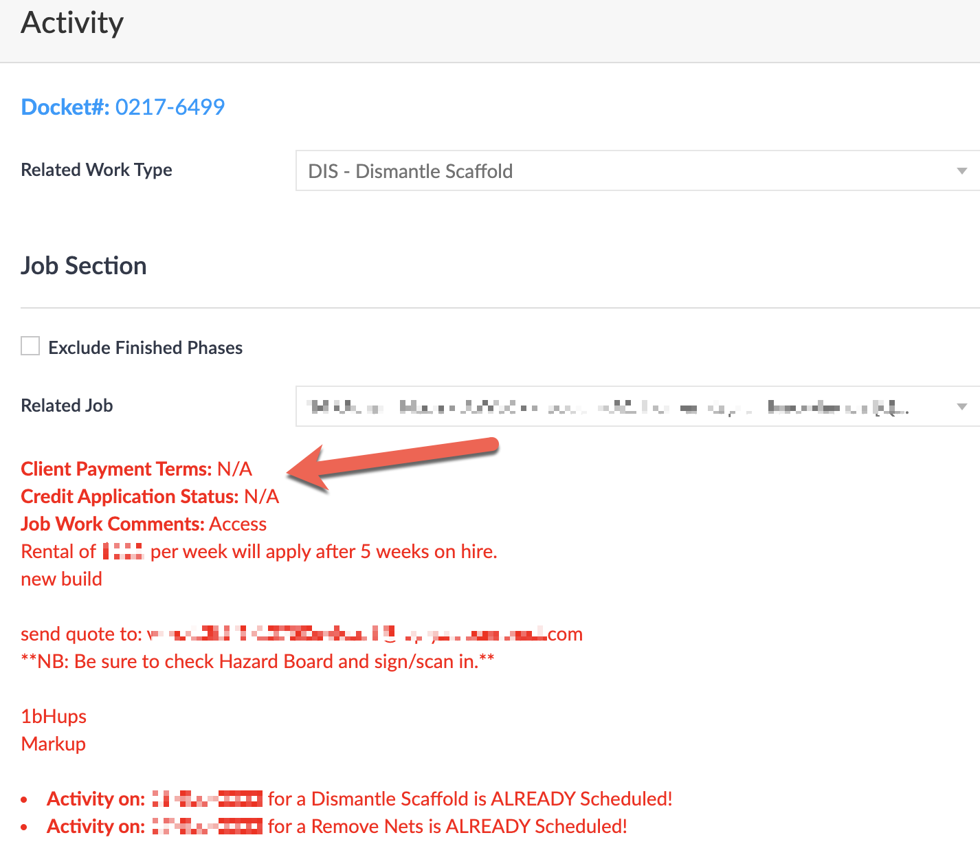 At times you may want to see the Client Payment Terms and Credit Application Status when you are creating new jobs or adding an activity to the schedule.