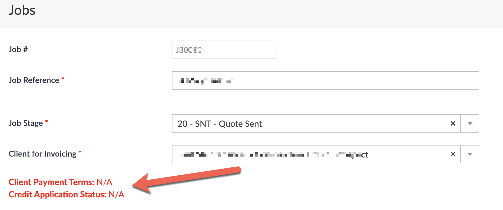 JOBS: How to show client payment terms, due date terms and credit application status on a Job