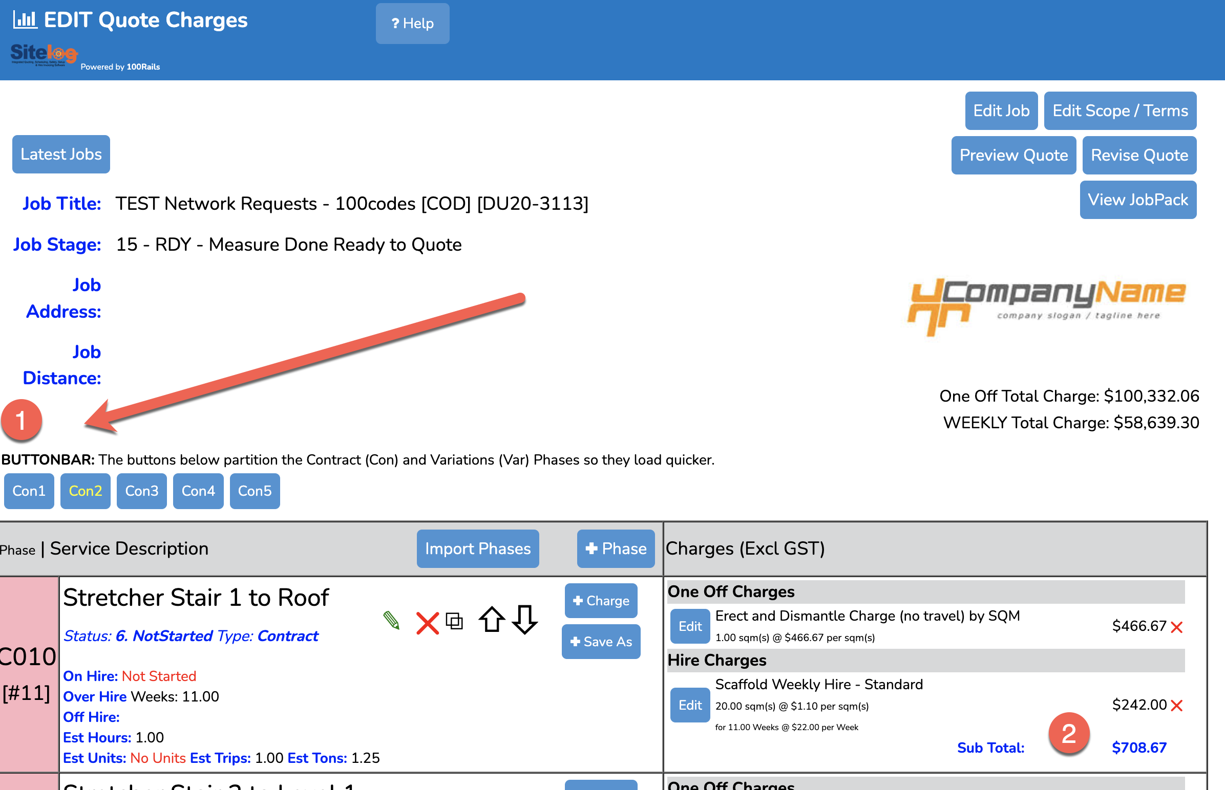 Tonight we released a NEW WAY of looking at BIG Quotes. Any Quote/Job that has more than 10 Phases will now be split into TAB BUTTONS that are summarised into Contract (Con) or Variation (Var) phases.