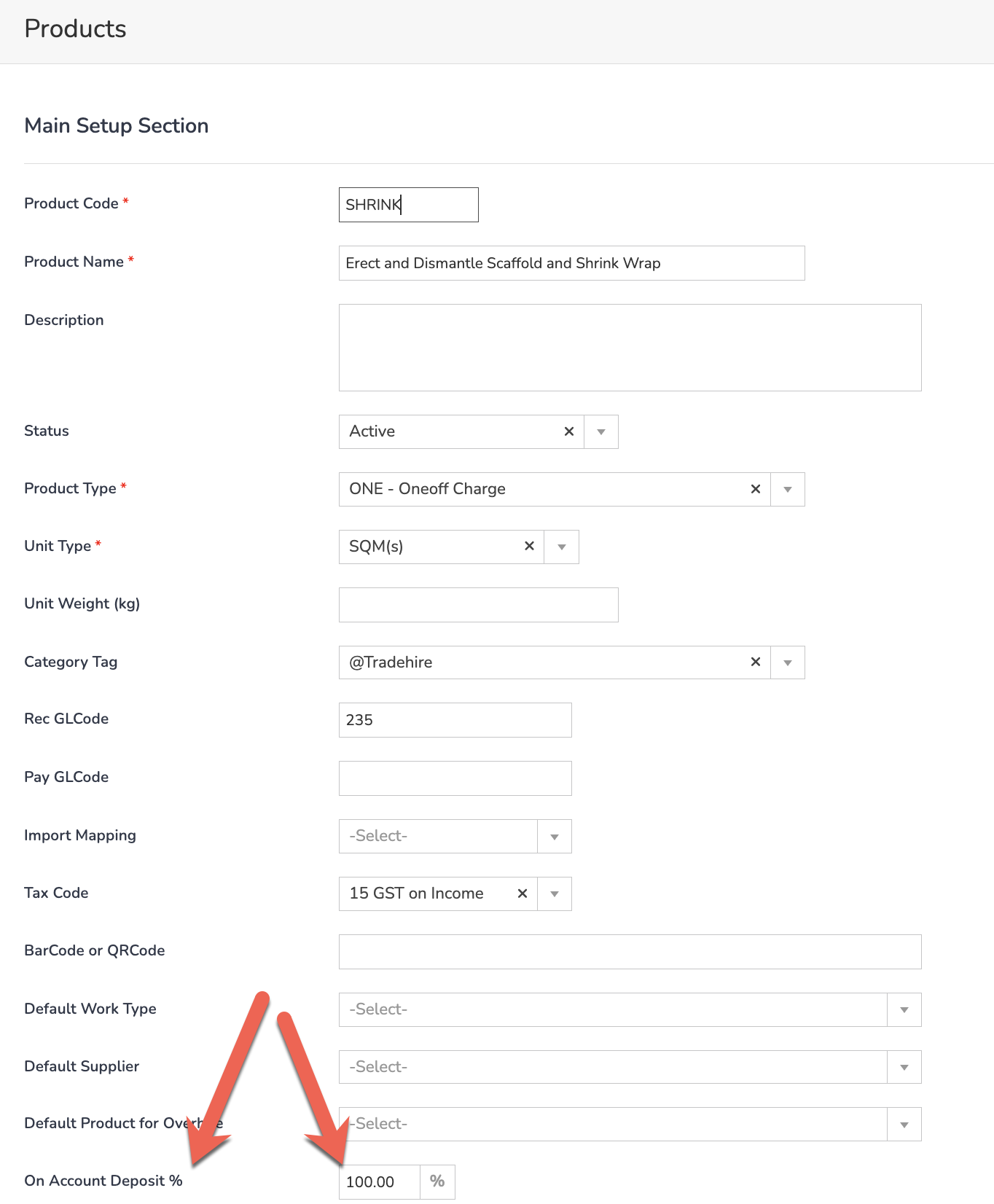 NB. Ensure the Products that you are billing have the % on Account set to 100%