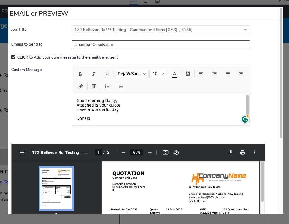 We have added an exciting new feature that allows you to add customised messages to your quotes and invoices upon sending to your clients