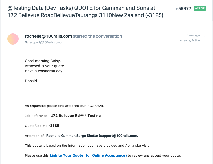 When your customer receives the emailed quote they will receive this message embedded into the email