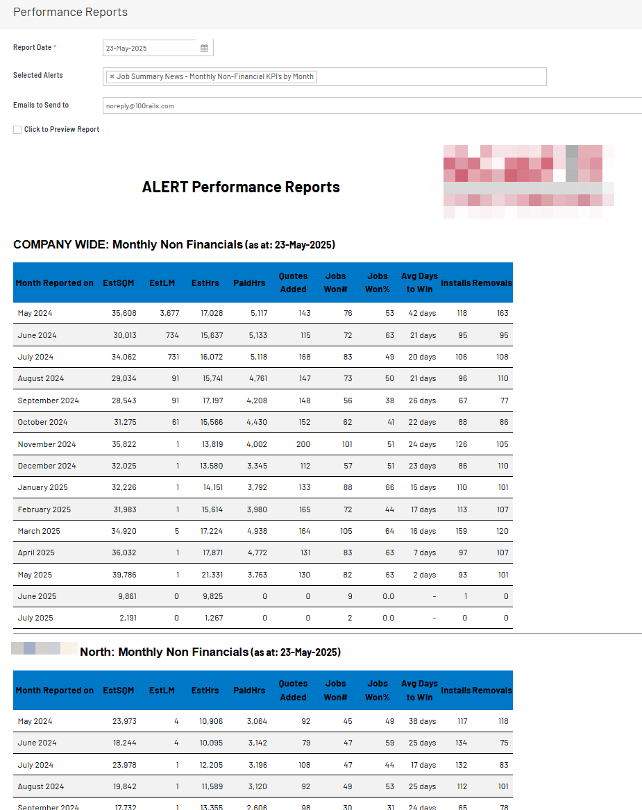 JOB SUMMARY NEWS - Monthly Non-Financial KPI's by Month