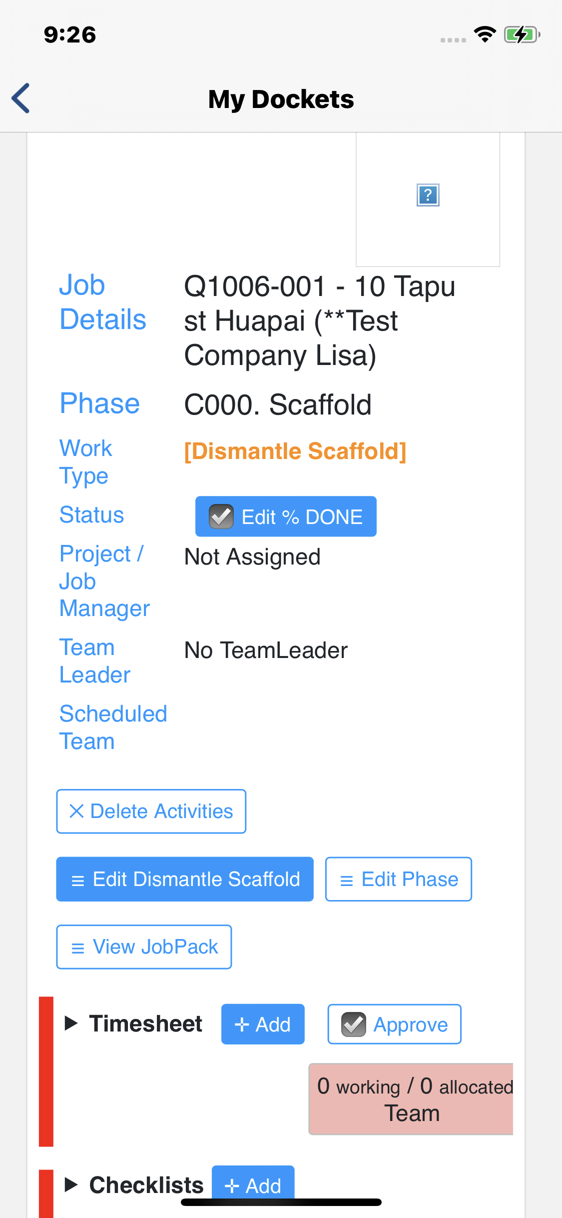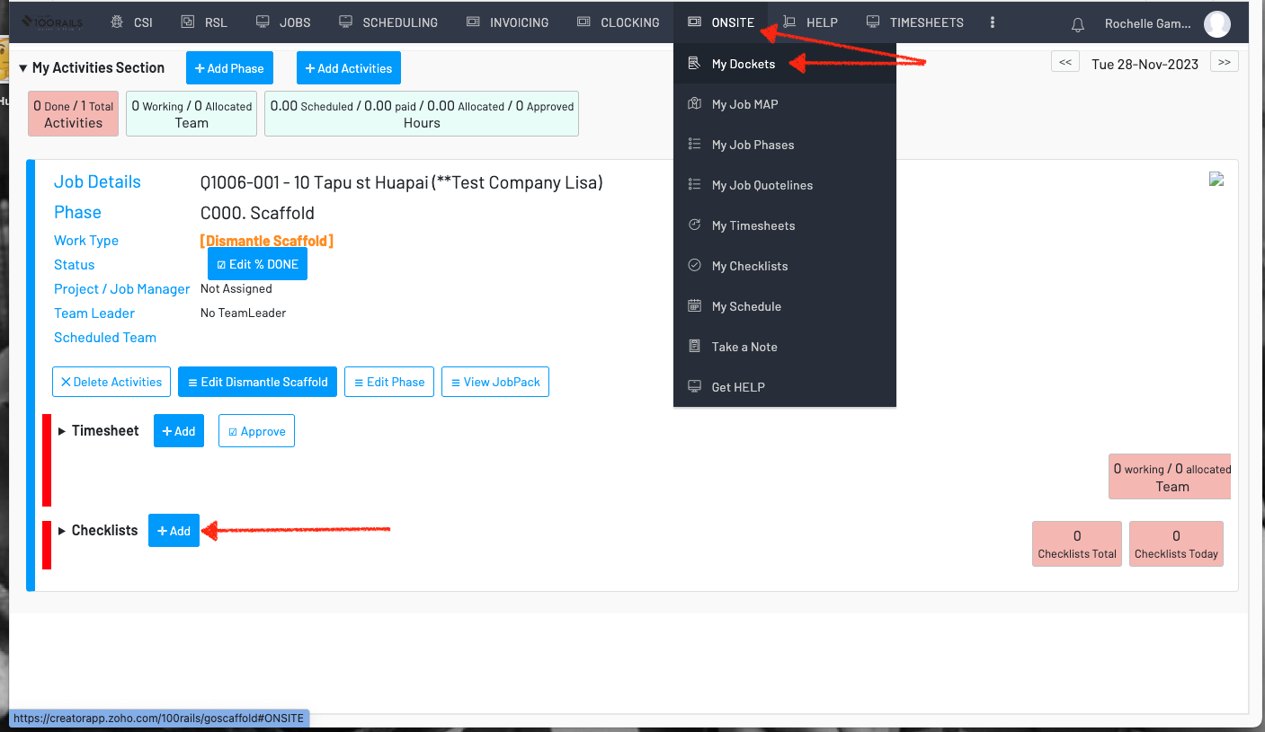This is done via the Onsite Menu, My Dockets - Perfect for your Leading Hand to complete as he does his checklists for the Activity on-site