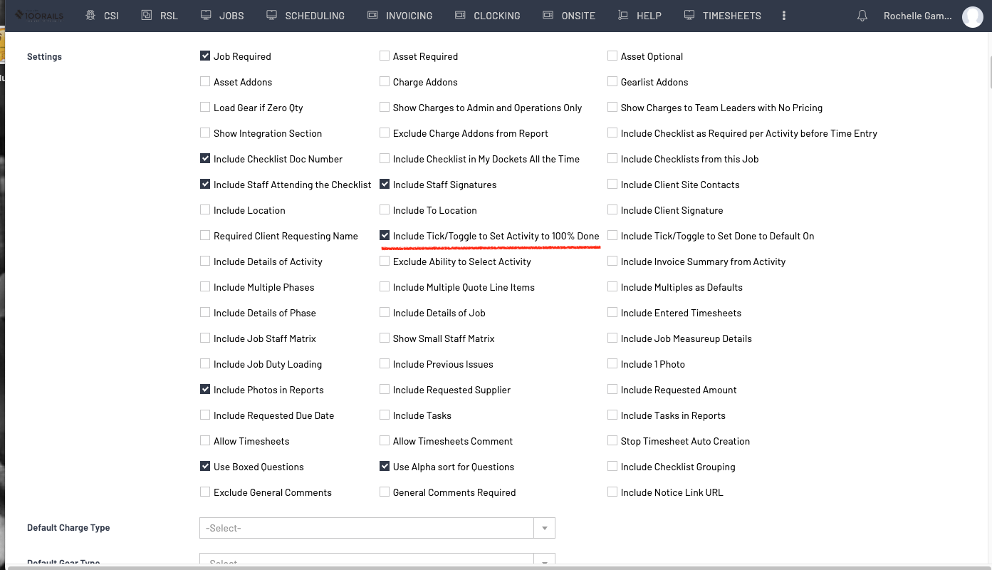 NOTE: This can be set as a default to be ticked automatically, but EVERY time this checklist is used it will set the activity to 100%