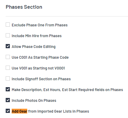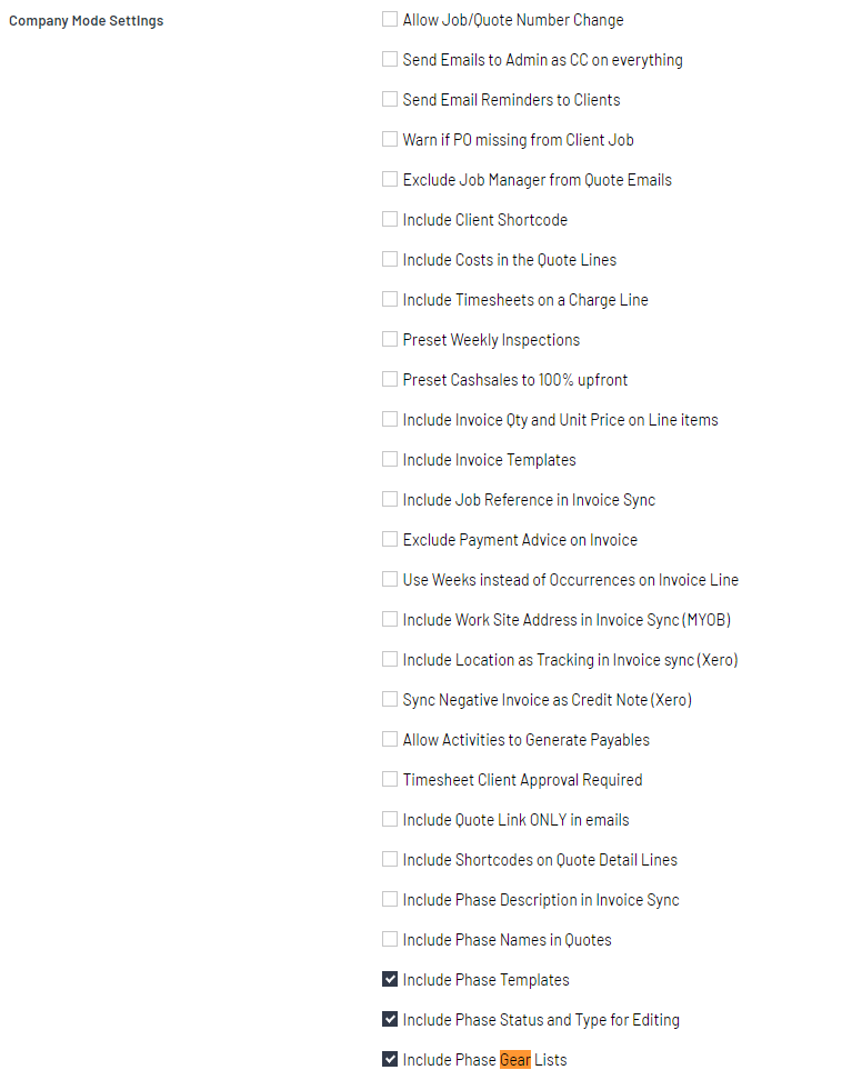 To setup this option the GEAR LIST option in the Company Data setup must be configured as below: