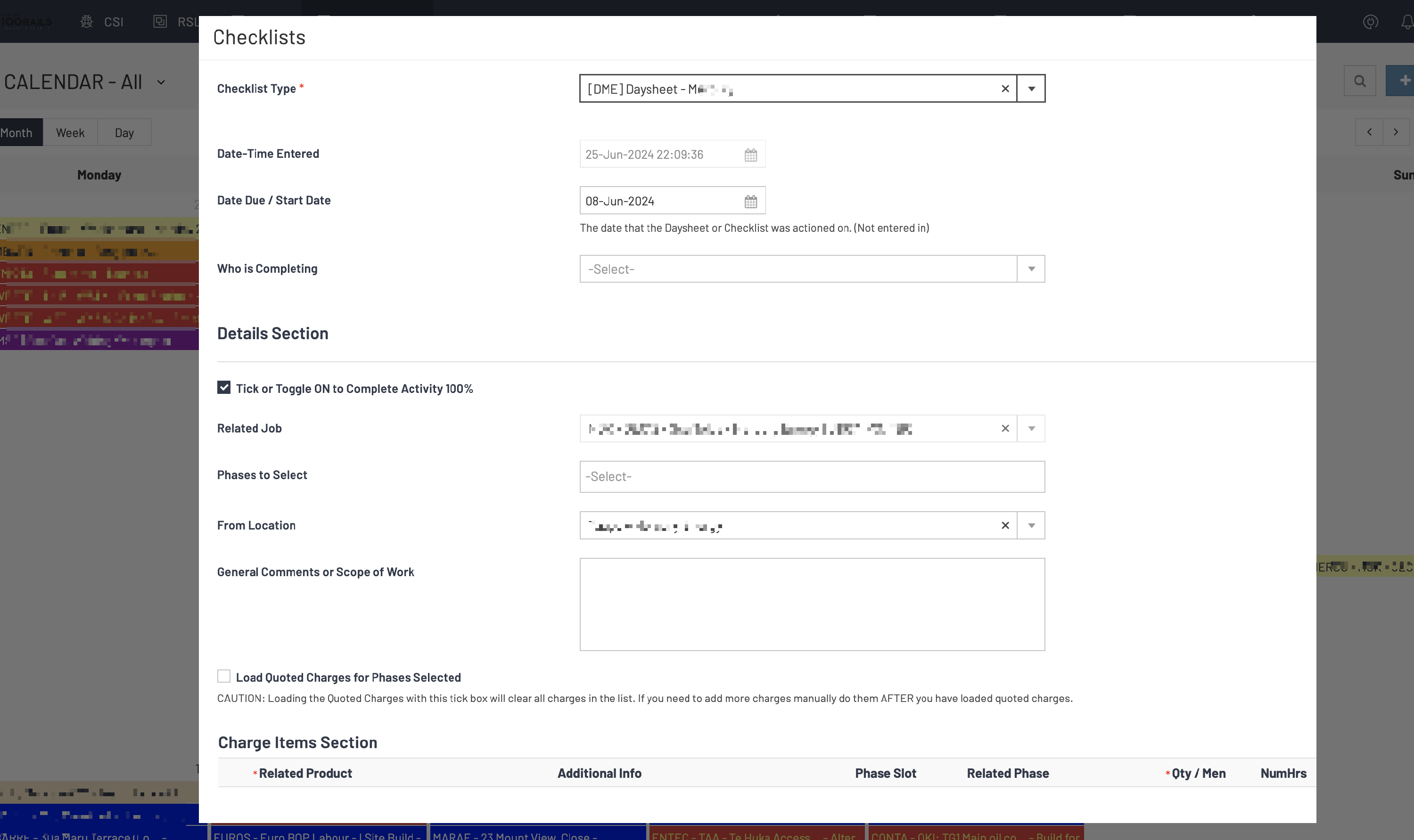 Creating a Checklist / Daysheet / Dayworks from the Calendar or Pre Invoicing
