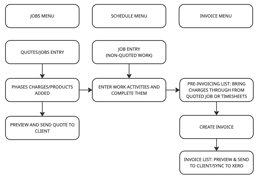 Here is a handy visual for how Scaflog flows from the quotes to invoicing. Designed for the person who is doing the invoicing.